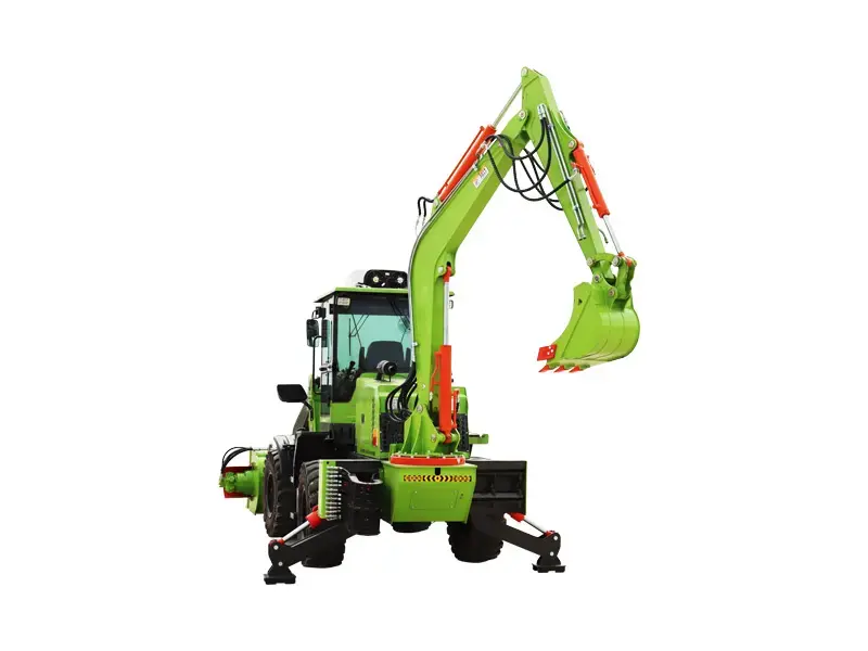 The Wheel Backhoe Loaderutilizes an engine as its power source, with a hydraulic pump delivering high-pressure oil to drive the entire machine’s operating system. The hydraulic system employs a multi-way valve to precisely regulate flow and pressure, independently controlling the front-end loading mechanism and rear-end backhoe excavation mechanism to perform combined operations such as loading, digging, and backfilling. The travel system transmits power to the tires via the transmission, ensuring excellent traction and maneuverability. Outriggers extend during operation to lower the machine’s center of gravity and enhance digging stability. Through the efficient coordination of hydraulic and mechanical systems, the machine achieves high-efficiency, multi-functional construction in confined spaces.