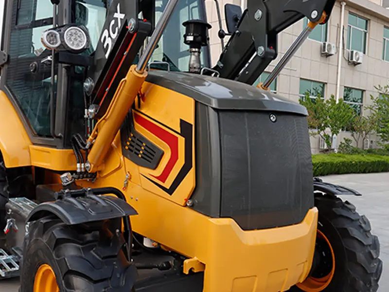 The 3CX construction machinery backhoe loader utilizes a hydraulic system to drive the boom and bucket for digging and loading operations. Featuring front and rear counterweights combined with a multi-link design, it delivers efficient, stable, and flexible performance.