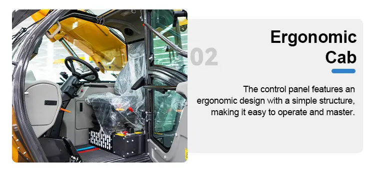 - Cab Customization – Options include air conditioning, suspension seats, wide-view windows, and control consoles to enhance operator comfort and safety.