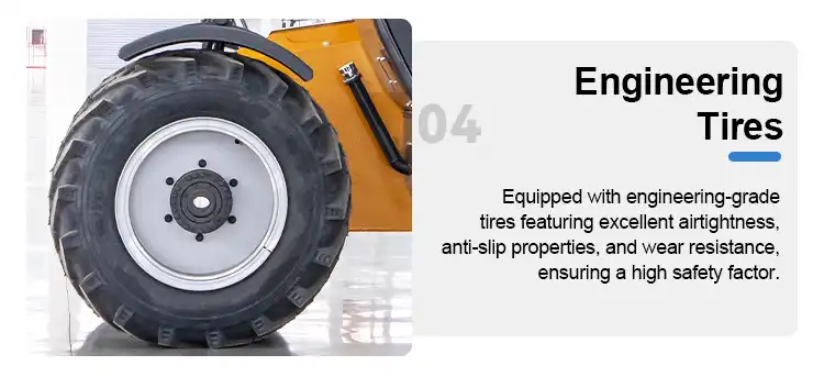 The agricultural telehandler’s engine delivers reliable power, the cab ensures ease of operation, durable hydraulic hoses support smooth lifting and lowering, off-road tyres adapt to various terrains, and versatile attachments—such as pallet forks, bale clamps, and buckets—meet a wide range of operational needs, making this a multi-functional machine for efficient farm transport. Below are the details shown for the agricultural telehandler: