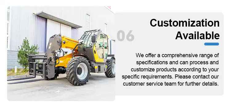 Our Agricultural Telehandlers offer flexible customization options, allowing customers to tailor the power system, boom length, attachments, and safety features to meet specific farm operation requirements, terrain conditions, and material types, thereby helping them achieve efficient, precise, and reliable agricultural material handling operations.